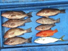 タイラバ釣果 オオモンハタ38cm頭に7匹、アカハタ、ツバス