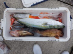 福丸さん クロダイ 25.0㎝前後2枚 他 オオモンハタ (餌:シラサエビ)
