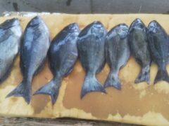 松谷浩二さん チヌ 32~37cm 5枚 他(アケミ貝むき身、エビ)