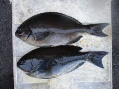 磯釣果 柏井氏 グレの 42.5センチを1匹 チヌの 45‥48センチを各1匹。