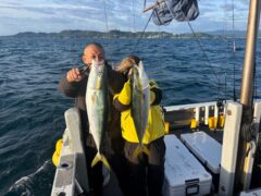 泳がせ釣果 ヒラメ船中14枚。他にワラサとカンパチが釣れました。