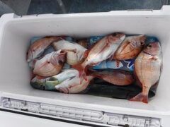 ウタセ真鯛釣果 マダイ:28cm~50cm ハマチ、イサキ、グレ、シオ、交じり