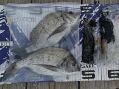 カセ釣果 真鯛42センチ2枚 シマアジ3匹 ヘダイ