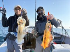泳がせ釣果 ハマチ アオリイカ、オオモンハタ、オニカサゴ、ウッカリカサゴ、アヤメ…