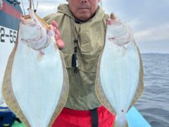 泳がせ釣果 ヒラメは竿頭4枚が2名で船中22枚釣れました!