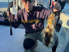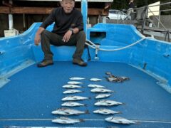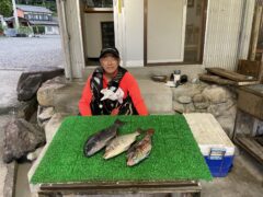 2025.10.06船外機ボートでイサキ、シマアジ、カワハギ、オオモンハタをゲット。