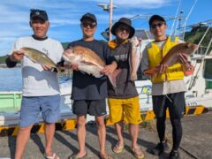 2025.10.06レンタルボート マダイMAX68Cm、アカヤガラ、シオ、ハマチ、オオモンハタなど