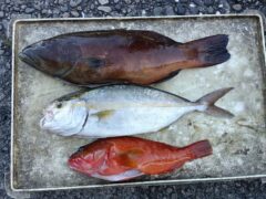 2025.10.06スジアラ 44㎝ 1匹 シオ 40㎝ 1匹 アカハタ