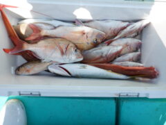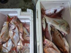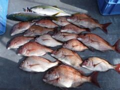 ウタセ真鯛釣果 マダイ 25〜40cm 15〜20枚 カンパチ、ハマチ、アカヤガ…