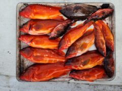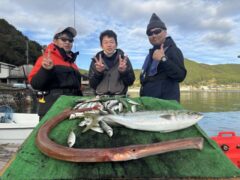 船外機ボートでシオ、アカハタ、オオモンハタ、イトヨリをゲット。