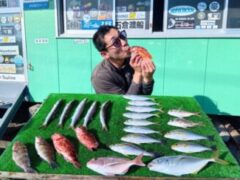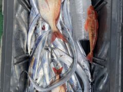 泳がせ釣果 ハマチ アオリイカ、オオモンハタ、オニカサゴ、ウッカリカサゴ、アヤメ…