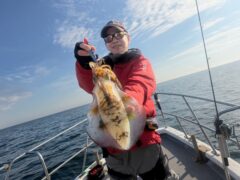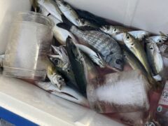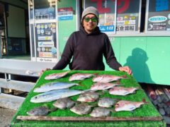 船外機ボートでマダイ、カワハギ、シイラ、ツバスをゲット。