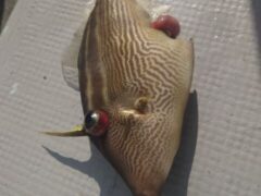 レンタルボート釣果 ヒラメ56cm、アカハタ34cm頭に9匹、カワハギ1匹、オオ…