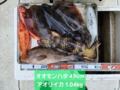 オオモンハタ 49cm アオリイカ 1.04kg頭に5杯