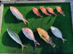 レンタルボート釣果 ハマチ46cm、アオハタ40cm、マダイ39cm、イトヨリ…