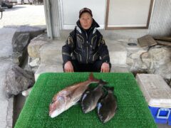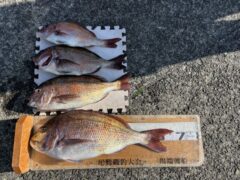 マダイの 49〜53センチを4匹 チヌの 40センチを1匹 グレの 30センチを…