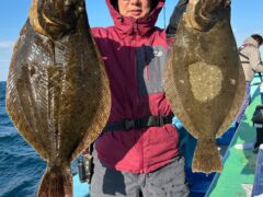 泳がせ釣果 ヒラメ 45〜68㎝ 計7枚 スズキ 50〜70㎝ 計5匹