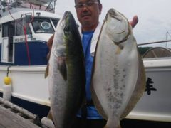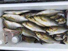 釣果 鰤2本、ワラサ6本 サワラ18本 真鯛2枚、ハマチ3本 ヒラメ2枚、カサゴ…