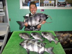 半夜釣りで高橋さんがイシダイ64cmまでとイシガキをゲット