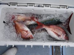 マダイ 27~58cm 5~11匹。 ハマチ 45cm 1匹。