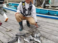 松阪の中野さんら2人がマダイ40、60㎝2匹 イサキ30~38㎝25匹 メバル2…