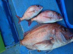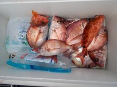 奈良市の中澤一平さんが、マダイの73センチを1匹、グレの41~47センチを2匹