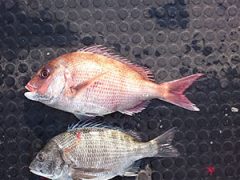 一日便マダイ。 釣果 マダイ 26~38cm 1~9匹。 カサゴ