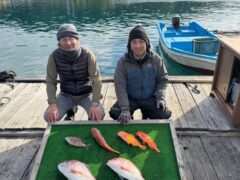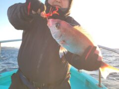 タイラバ、ジグともにアタリ少なく 1人がエサにかえたら よ〜アタルこと!