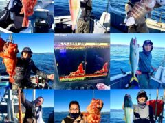 ジギング釣果 ワラサ、3本 サワラ3Kクラス1本 真鯛3枚1枚60cm ハマチ3…