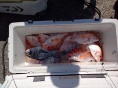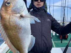 レンタルボート釣果 マダイ60cm頭に7匹、オオモンハタ47cm、ホウボウ38…