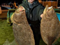 泳がせ釣果 ヒラメ 58〜67㎝ 計4枚 スズキ 62〜64㎝ 2匹