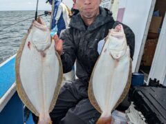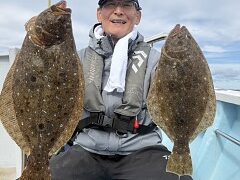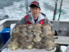 泳がせ釣果 ヒラメ多い人で4枚。全体で14枚の釣果