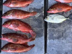 タイラバ釣果 マダイ58cm頭に4匹、レンコダイ3匹、イトヨリ2匹、カサゴ7匹