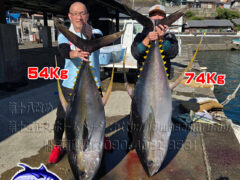 キハダふかせ釣果 キハダ 2尾(74Kg・54Kg) 。