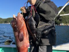 レンタルボート釣果 オオモンハタ31cm頭に5匹、マダイ1匹、ガシラ1匹、アカハ…