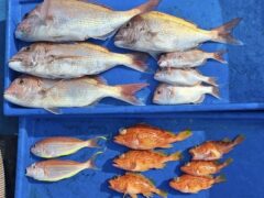 ウタセマダイ釣果 真鯛24~40cmを多い人30匹、シオ(40~45cm)・ツバ…
