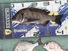 カセ釣果 真鯛42センチ2枚 シマアジ3匹 ヘダイ
