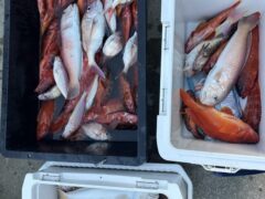 タイラバ釣果 マダイ58cm頭に4匹、レンコダイ3匹、イトヨリ2匹、カサゴ7匹