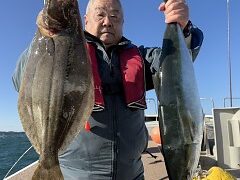泳がせ釣果 ヒラメ 45〜50cm 2枚 マゴチ、ワニゴチ、マハタ、ドチザ…