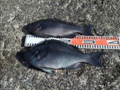 磯釣果 ヒラスズキ55㎝・グレ35㎝