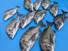出口さん チヌ 22㌢~35㌢ 14枚 エサ シラサ…