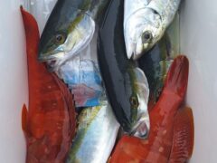 タテ釣り釣果 大ハマチが主体でハマチやブリ、カンパチも混じり良く釣れました。