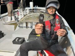 船外機ボートで名平さんがアオリイカ1.2キロまでゲット。