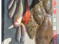 泳がせ釣果 ヒラメ 36~56㎝ 0~3枚 計4枚 白甘鯛、イトヨリダイ、小ダイ…