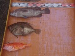 メイチダイ38cm、マダイ31cm、アオハタ31cm