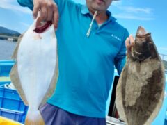泳がせ釣果 ヒラメ竿頭が3匹で船内10匹