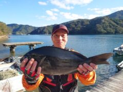 船外機ボートで井上さんがアオリイカ1.3㎏までゲット。
