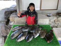 磯釣りでグレ35㎝〜49㎝まで6枚・チヌ42㎝・カワハギ・イガミ