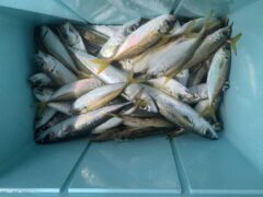 タテ釣り釣果 シオ7~8枚にハマチ3本、大型のオオモンハタ含め2枚にアカハタ等