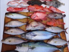 マハタ4匹 アオハタ5匹 ワラサ、メジロ2本 サゴシ2本 シオ1本 タチウオ ト…